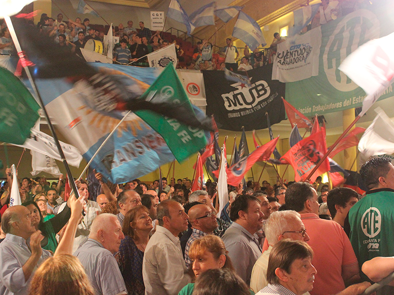 En un documento que fue leído conjuntamente por todas las organizaciones, se consignó entre otros puntos “El 22 de noviembre se define el futuro del país. La decisión que tomemos tendrá un gran impacto sobre el mundo del trabajo. No se trata de infundir miedo sino de plantear la verdad claramente y a tiempo: Macri es el candidato de los poderosos, del FMI, de los buitres y de “los mercados. Se trata de decirle la verdad a nuestro pueblo.”