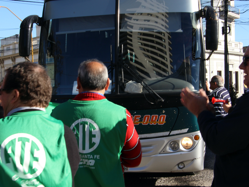 La Asociación Trabajadores del Estado –ATE- Santa Fe junto a los trabajadores de la SecretarÃa de Transporte, la Dirección Provincial de Aeropuerto Sauce Viejo y la Dirección General de Control de Autopista –dependientes del Ministerio de Infraestructura y Transporte- y UPCN realizaron una protesta con paro incluido este miércoles 17 en inmediaciones de la Terminal de Ómnibus de la ciudad de Santa Fe.