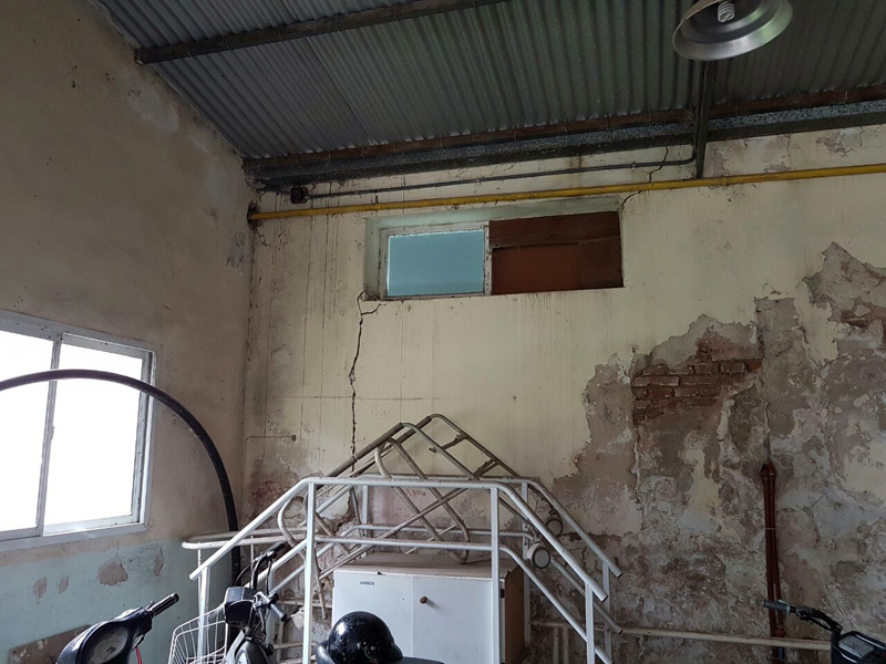 Asimismo, señalan varios daños materiales, la aparición de rajaduras en muchas paredes y huecos en los pisos hacen que haya varios sectores clausurados en la institución.