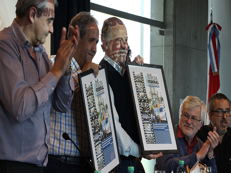 La Mesa central del Plenario contó con la presencia y las intervenciones de Hugo Yasky -Secretario General CTA Nacional- y Sergio Palazzo -CGT Corriente Federal de los Trabajadores-, junto a los referentes sindicales santafesinos Jorge Hoffmann, José Testoni, y Sonia Alesso por CTA, y Claudio Girardi, Claudio Leoni y Sergio Chiozzi por CGT.