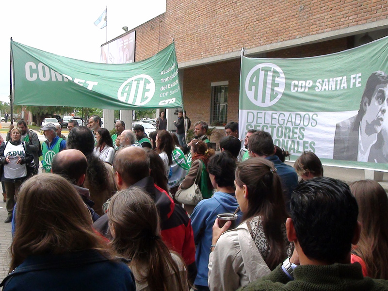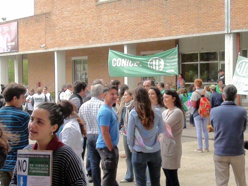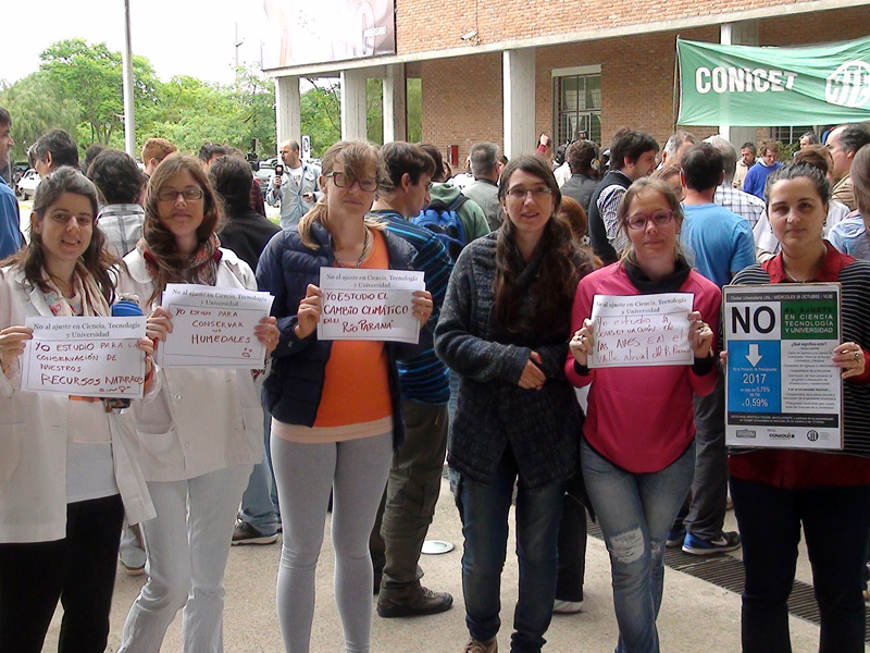 Este miércoles 26 de octubre se realizó una concentración desde las 10 hs. en Ciudad Universitaria de esta capital santafesina a instancias de Científicos y Universitarios Autoconvocados de Santa Fe, Adul -Asociación de Docentes de la Universidad Nacional del Litoral-, la CONADUH -Federación Nacional de Docentes, Investigadores y Creadores Universitarios y la Asociación Trabajadores del Estado –ATE- Santa Fe.