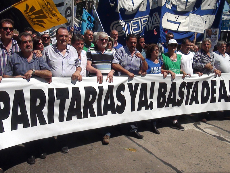 En ese marco, alrededor de 20 mil trabajadores escucharon los discursos de Juan Medina (ASOEM), Antonio Ratner (FESTRAM), Claudio Leoni, Sec. Gral. de FESTRAM, Jorge Hoffmann, Sec. Gral. del CDP ATE Santa Fe, MartÃn Lucero de SADOP Rosario y el cierre de Sonia, Alesso, Secretaria General de AMSAFE.