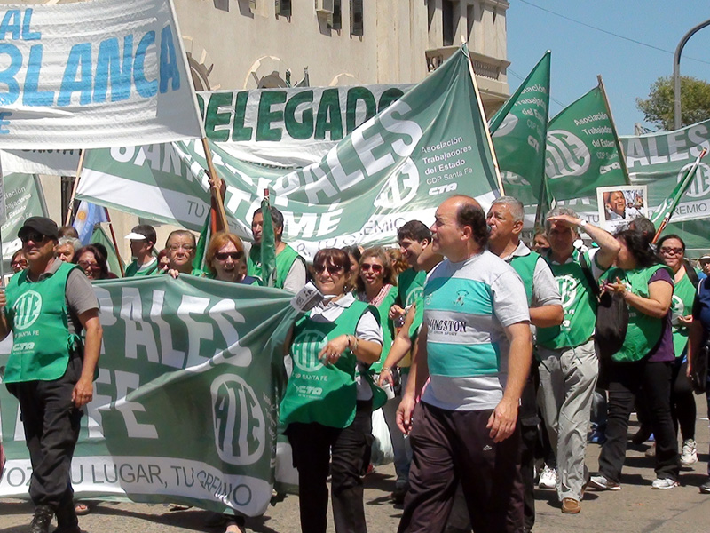 Este miércoles 9, el cuerpo de delegados de la Asociación Trabajadores del Estado –ATE- Santa Fe participó junto a la AMSAFE, SADOP y FESTRAM de la masiva movilización que marchó desde la explanada de la Legislatura provincial a Plaza de Mayo, donde se realizó el acto central.