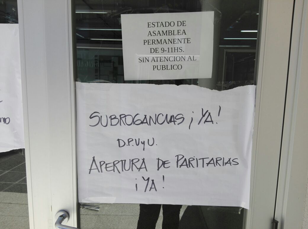 Desde el pasado 11 de noviembre, los trabajadores de la Dirección Provincial de Vivienda y Urbanismo junto a delegados de la Junta Interna ATE, se declararon y permanecen en Estado de Alerta y Asamblea permanente debido a que se encuentran vencidos los plazos acordados en la jurisdiccional para el otorgamiento de subrogancias acorde a la estructura orgánica aprobada por Decreto 1383/15.