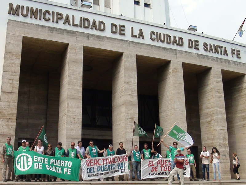 Los trabajadores del Ente Administrador del Puerto se manifestaron frente a la Municipalidad de Santa Fe