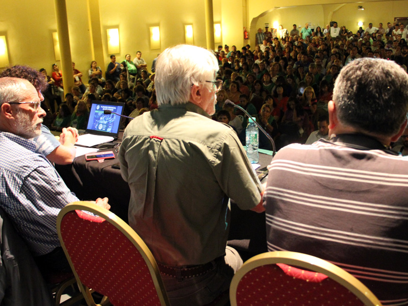En primera instancia, el Sec. Gral. de ATE, Jorge Hoffmann, dio la bienvenida a los presentes destacando la importancia de la militancia, la capacidad de movilización popular de los trabajadores en los últimos tiempos en un contexto de políticas adversas para el movimiento obrero aplicadas por el gobierno nacional.