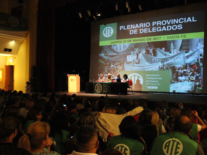 En horas del mediodía de este jueves 23, la Asociación Trabajadores del Estado –ATE- Santa Fe realizó en las instalaciones de ATE Casa España el Plenario provincial de Delegados para poner en consideración la aceptación o rechazo de la última propuesta salarial presentada por el gobierno provincial.