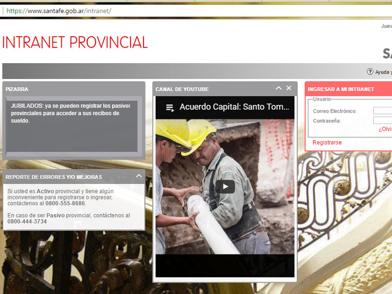 ↵Ingrese a www.santafe.gov.ar/intranet. En el box "Ingresar a mi Intranet" haga clic en Registrarse. El sistema le presentará la alternativa si es Activo o Pasivo Provincial