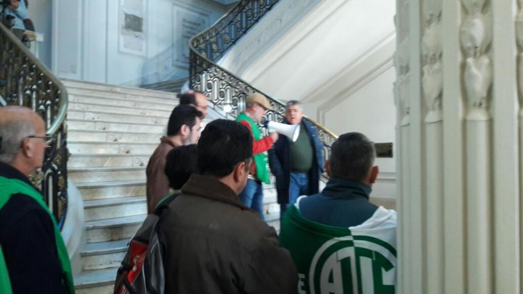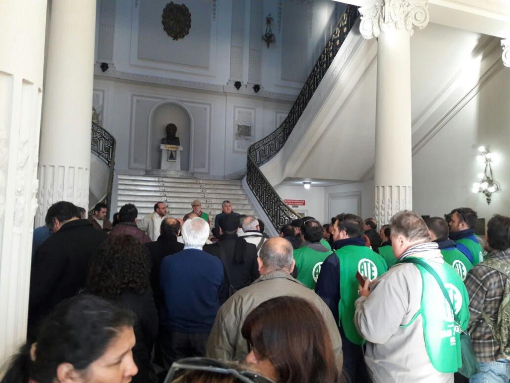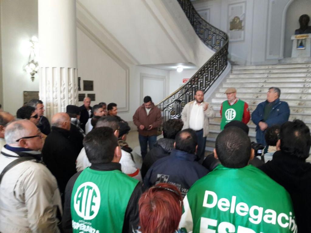 La Asociación Trabajadores del Estado -ATE- Santa Fe y los choferes de distintos ministerios llevaron adelante este lunes 12 de junio una numerosa asamblea en el hall de Casa de Gobierno en el marco de una jornada provincial de protesta.