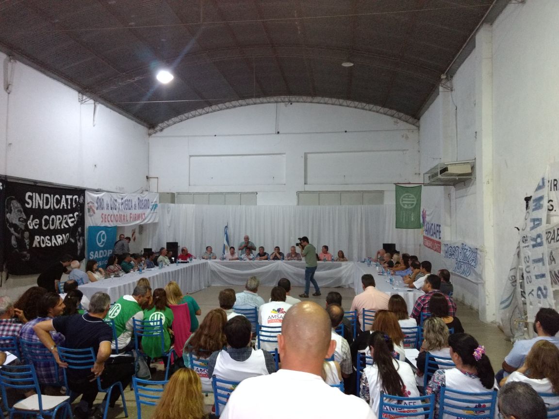 Se reunió en el local del Club Argentino de esa localidad, un centenar de milintantes y dirigentes de diferentes organizaciones sindicales y centrales de la región, como una expresión más de esta unidad santafesina que se viene construyendo desde abajo hacia arriba, para rechazar el ajuste del estado y la perdida de derechos de los trabajadores.