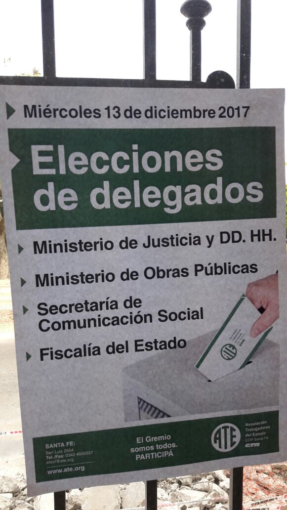 La Asociación Trabajadores del Estado -ATE- Santa Fe realizó elecciones de delegados este miércoles 14 de diciembre en la Secretaría de Comunicación Social, donde resultaron elegidos Miguel Rodríguez y Dellacqua Juan José.