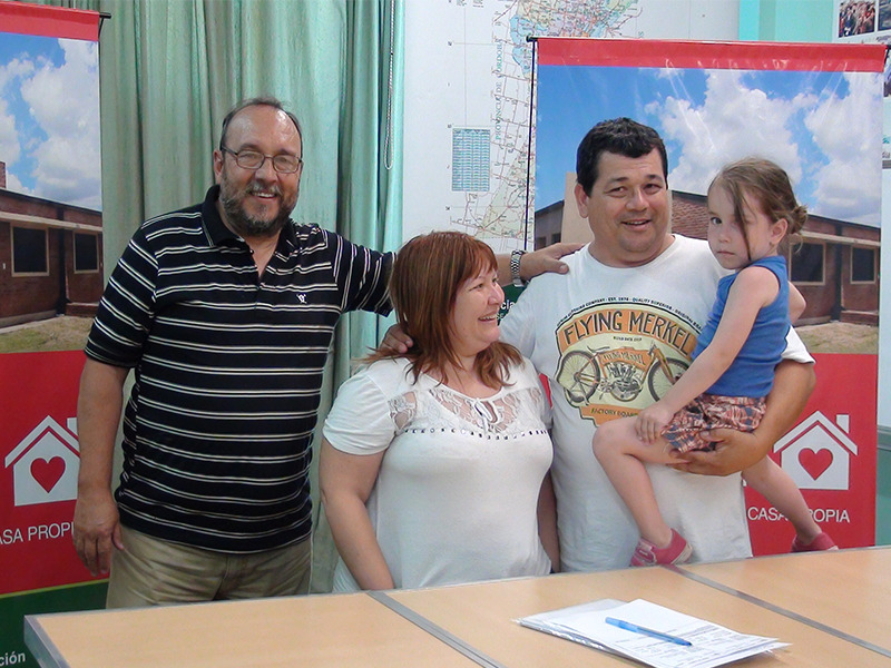 Con mucha alegría, el trabajador asistente escolar, Darío Trìbolo acompañado por su familia, firmó la documentación correspondiente que le permitirá ampliar su casa. En el marco del Programa ATE Vivienda y Refacción.