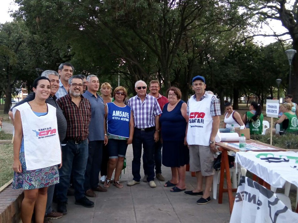 Integrantes del MOS –Movimiento Obrero Santafesino- recorren distintas localidades de la provincia de Santa Fe para presentar y sumar adhesiones a la Campaña “1 millón de firmas” contra la nueva Ley Previsional.