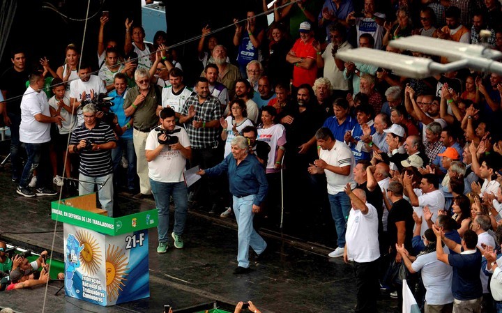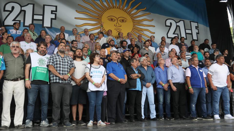 El titular de Camioneros destacó la amplia convocatoria de "distintos sectores políticos e ideológicos" lograda para el denominado 21-F, que se leía impreso sobre una bandera argentina en el palco de los oradores, y aseguró que las miles de personas presentes estuvieron por "un solo objetivo: decirle al Gobierno, al señor presidente, no siga llevando políticas que hambrean a la parte más sensible de nuestra sociedad".