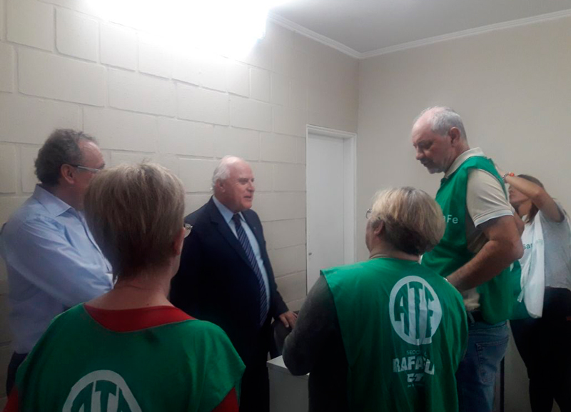 Trabajadores estatales nucleados en la Seccional Rafaela de ATE le entregaron un petitorio al gobernador de la Provincia, Miguel Lifschitz, en ocasión de su visita al Nodo de salud de dicha ciudad.