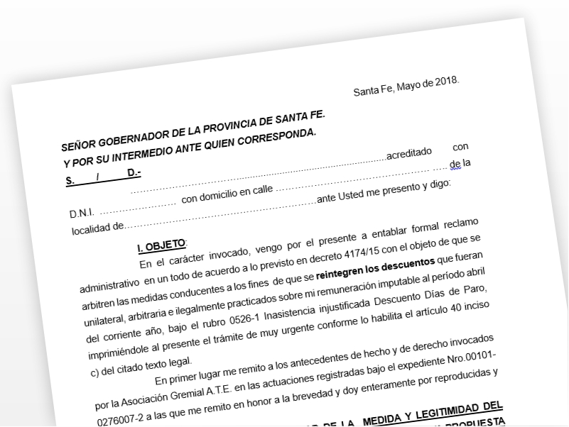 Recurso Administrativo Individual para ser presentado por el descuento del dÃa de paro