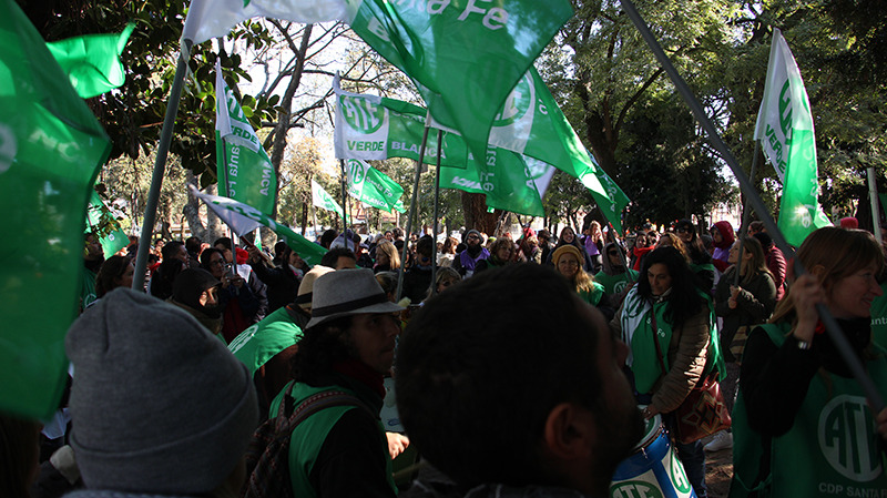 Trabajadores del Ministerio de Desarrollo Social de la Asociación Trabajadores del Estado -ATE- Santa Fe realizaron este jueves una contundente Jornada de protesta frente a la sede de la capital provincial.