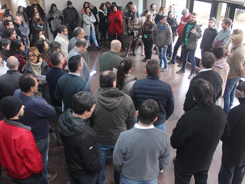 En una numerosa asamblea realizada en el hall del Centro Cívico, se exigió la convocatoria a la Comisión Paritaria Jurisdiccional del Ministerio de Educación y del Ministerio de Economía.