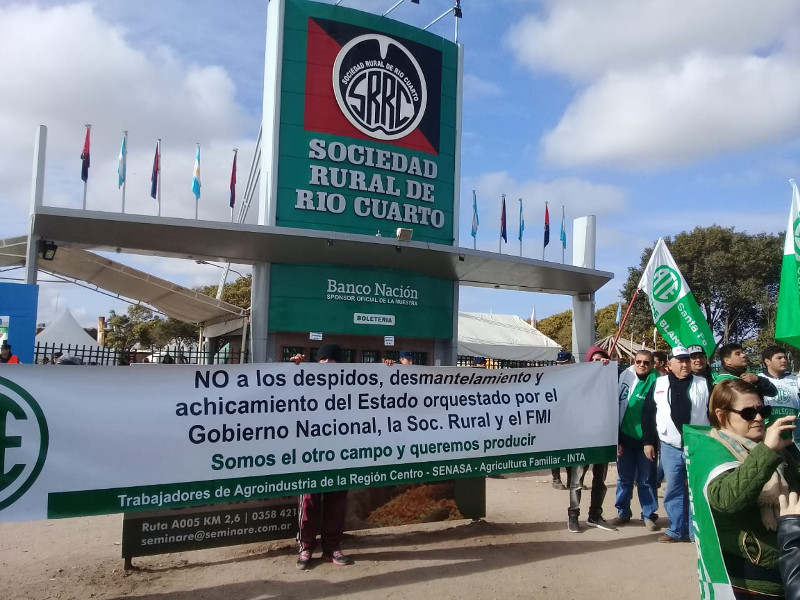 Trabajadores de la Región Centro del Ministerio de Agroindustria de la Nación, SENASA, INTA y Agricultura Familiar se manifestaron este fin de semana en la ciudad de Río Cuarto para rechazar el achicamiento y desmantelamiento del Estado orquestado por el Gobierno Nacional, la Sociedad Rural y el FMI.