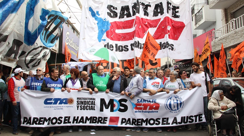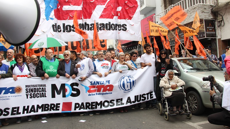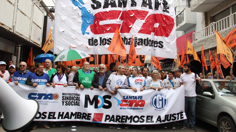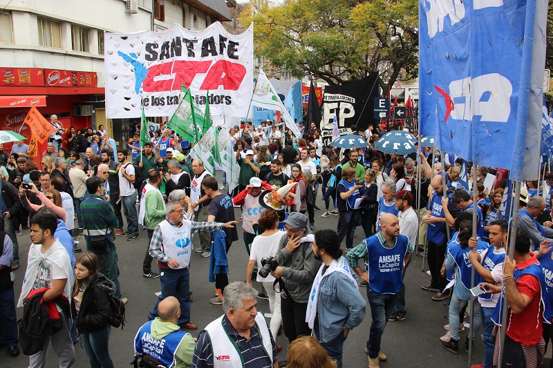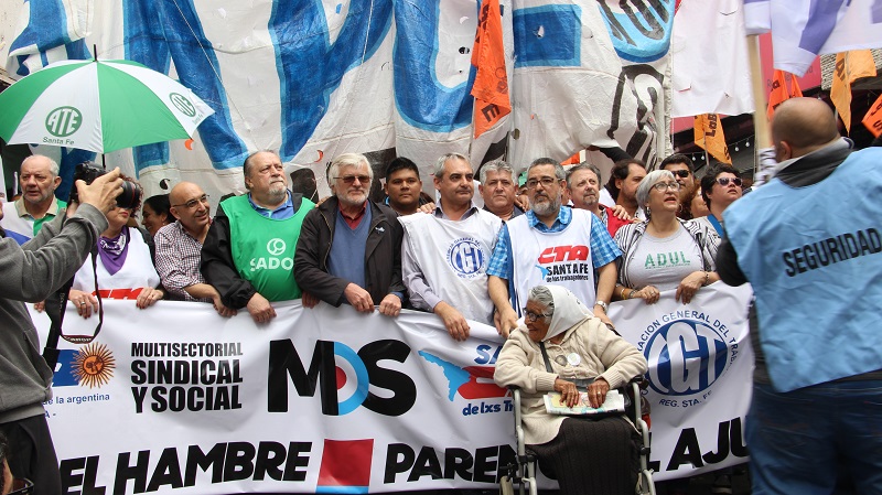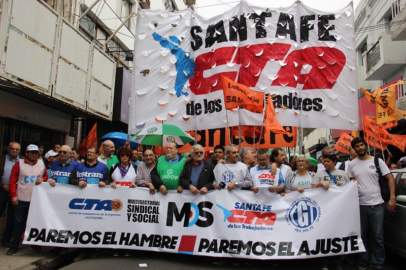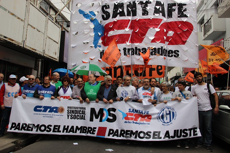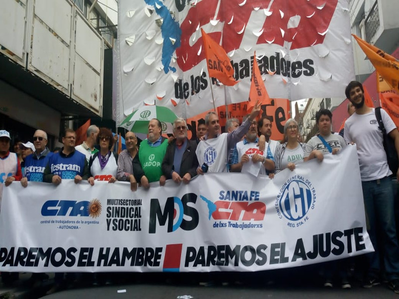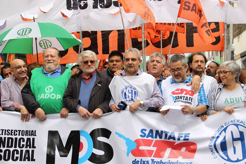 El Movimiento Obrero Santafesino -MOS-, CTA de lxs Trabajadorxs, Autónoma, CGT y movimientos sociales coincidieron en el ejemplo de construcción en la provincia de unidad y lucha para repudiar las políticas neoliberales del gobierno de Macri. El paro se realizó con total acatamiento.