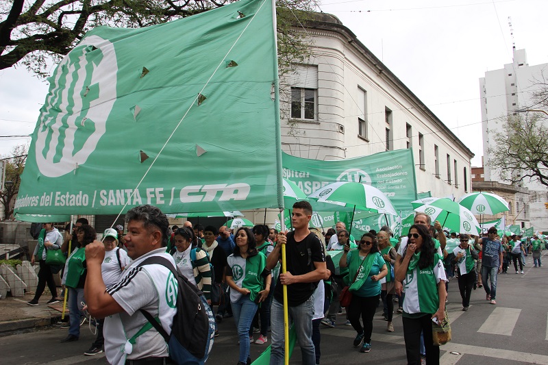 El paro dispuesto por la CTA de lxs Trabajadorxs de 36 horas desde el lunes 24 al mediodía y que en unidad con la CGT continuó este martes 25 durante todo el día obtuvo total adhesión en la provincia. Además, el Movimiento Obrero Santafesino -MOS- realizó actos contundentes y manifestaciones en las ciudades de Santa Fe, Rosario, Reconquista, Gálvez, Ceres.