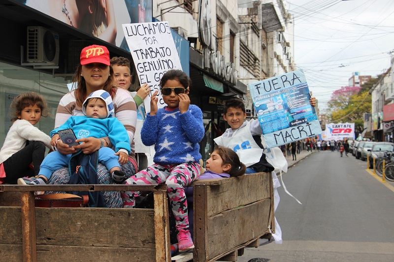 En ese marco, en el escenario dispuesto en la intersección de calle Salta y Av. 27 de Febrero, los dirigentes de la Corriente Clasista y Combativa -CCC- y de la CTEP coincidieron en que cada vez hay más niños/as que concurren a los comedores, son mayores las necesidades sociales de los sectores populares, y repudiaron la represión que aplica “este modelo de ajuste”.