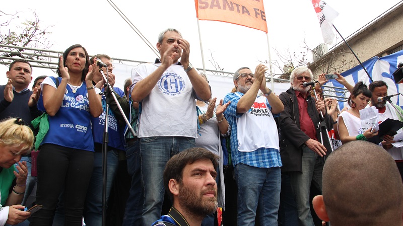 “No sólo luchamos por el presente para ponerle fin al hambre, la miseria y la desocupación, si sigue este modelo esto se va poner peor dentro de unos meses, y va a dejar de ser una nación dentro de 2 años cuando sea imposible pagar la deuda, porque han lavado, se han fugado más de 40 mil millones de dólares, equivalente al 10% de nuestro PBI”, expresó. Y agregó: “Esta demostración de unidad debe hacer reflexionar a la clase política, para construir un frente opositor para recuperar la soberanía económica, los derechos humanos, derechos sociales, la dignidad de nuestro pueblo”.