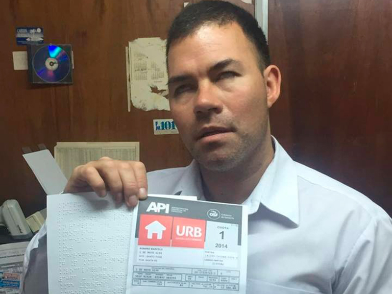 Pablo Ceballos es autor del proyecto “Centro de Impresión en Sistema Braille”, conducido y coordinado por compañeros/as con discapacidad visual, para dar cumplimiento a la Ley 12.951, que les garantiza a los personas no videntes de la provincia Santa Fe poder recibir las boletas en este formato.