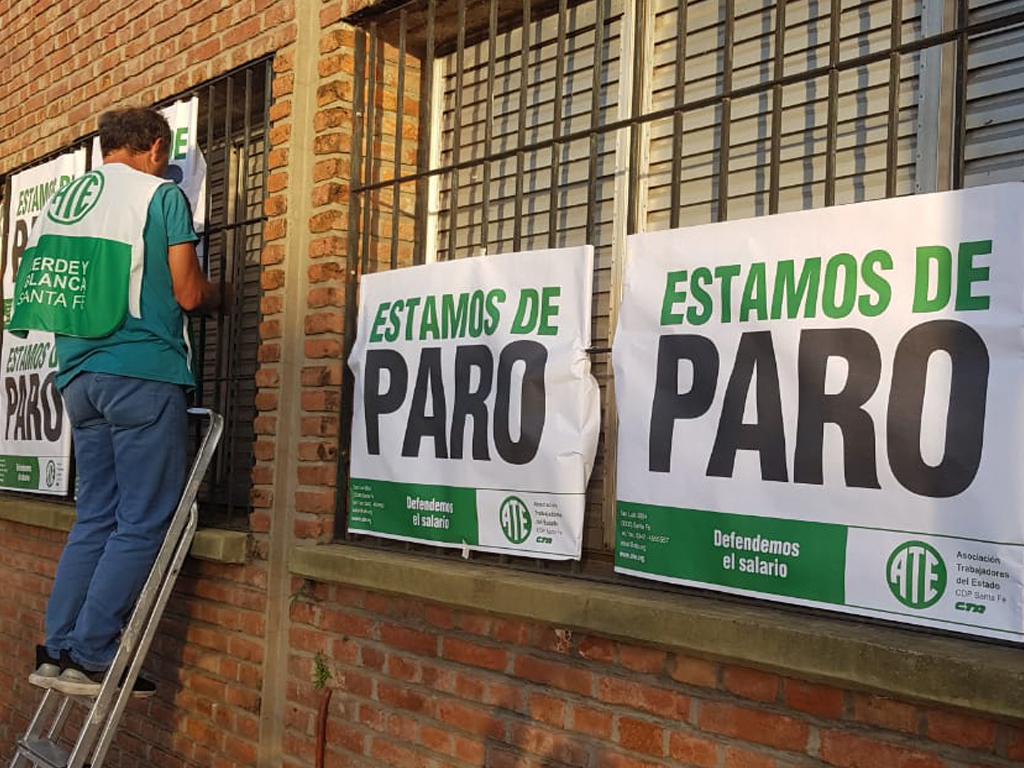 Tal como lo definió el Consejo Directivo Provincial de la Asociación Trabajadores del Estado -ATE- Santa Fe junto al cuerpo de Delegados, se cumple este martes 26 el primer día de paro sin concurrencia a los lugares de trabajo garantizando las guardias mínimas. Mañana miércoles 27 será el segundo día de huelga completando las 48 horas con la misma modalidad en todo el ámbito provincial.