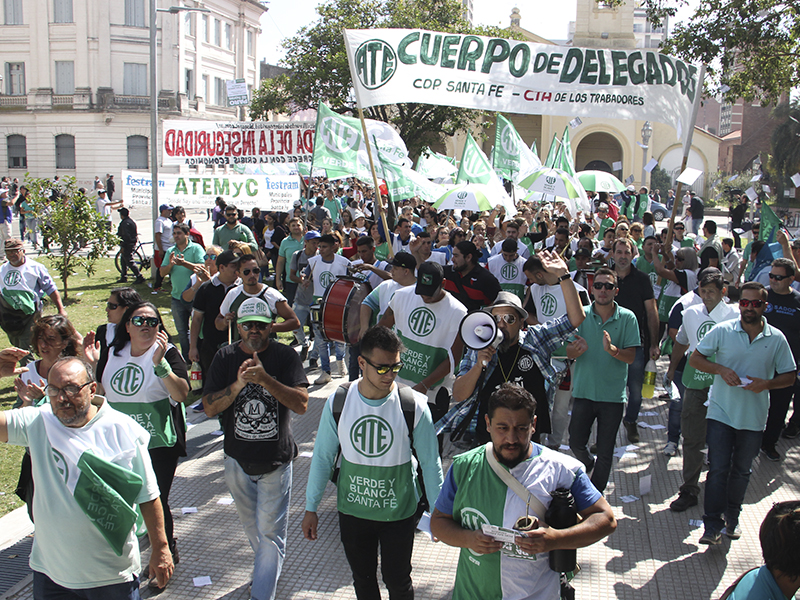 Este martes 26 se realiza la primera jornada de paro sin concurrencia a los lugares de trabajo en toda la provincia con altísima adhesión, en reclamo de mejores salarios luego de rechazar la propuesta del gobierno. Mañana miércoles 27 se cumplirán las 48 horas de paro con la misma modalidad. El cuerpo de delegados de ATE del Departamento La Capital acompañó la movilización que realizaron los gremios docentes en la ciudad de Santa Fe.