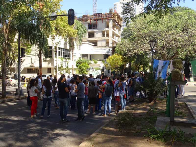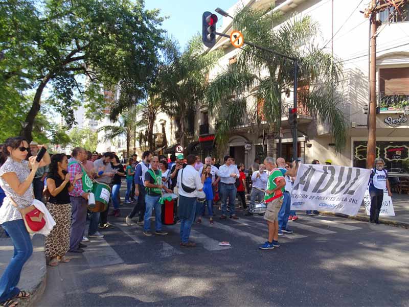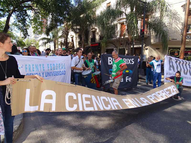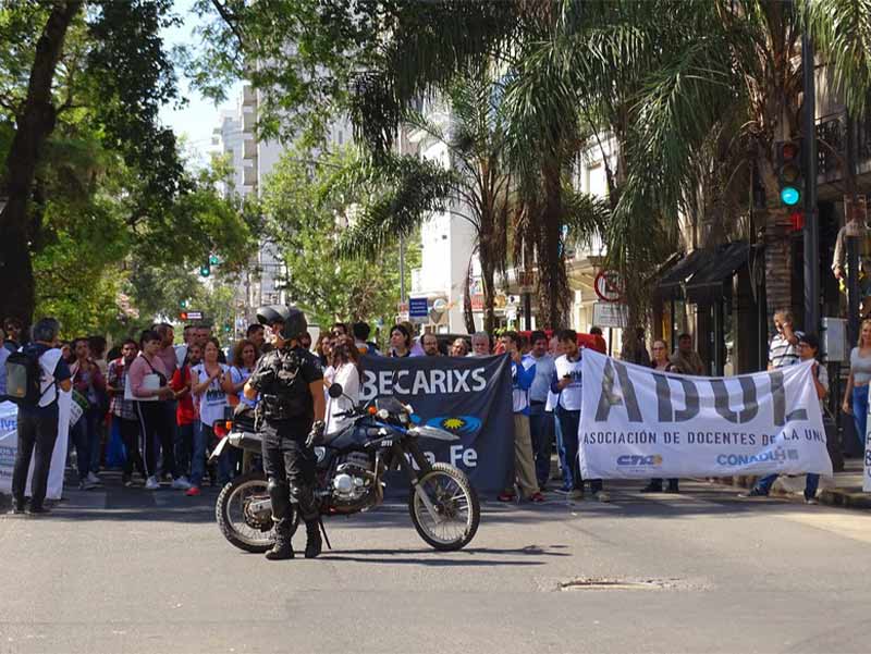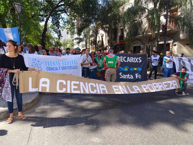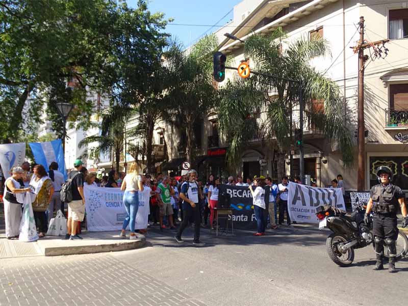 El miércoles 10 de abril se llevó adelante la Jornada nacional de lucha bajo la consigna “La ciencia también bajo la línea de la pobreza”. En Santa Fe, se realizó una concentración para expresar el reclamo.