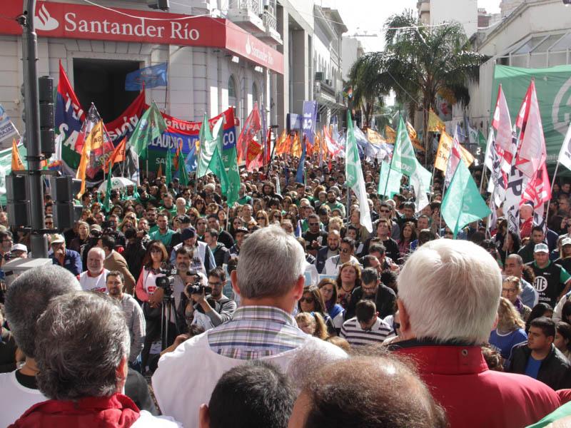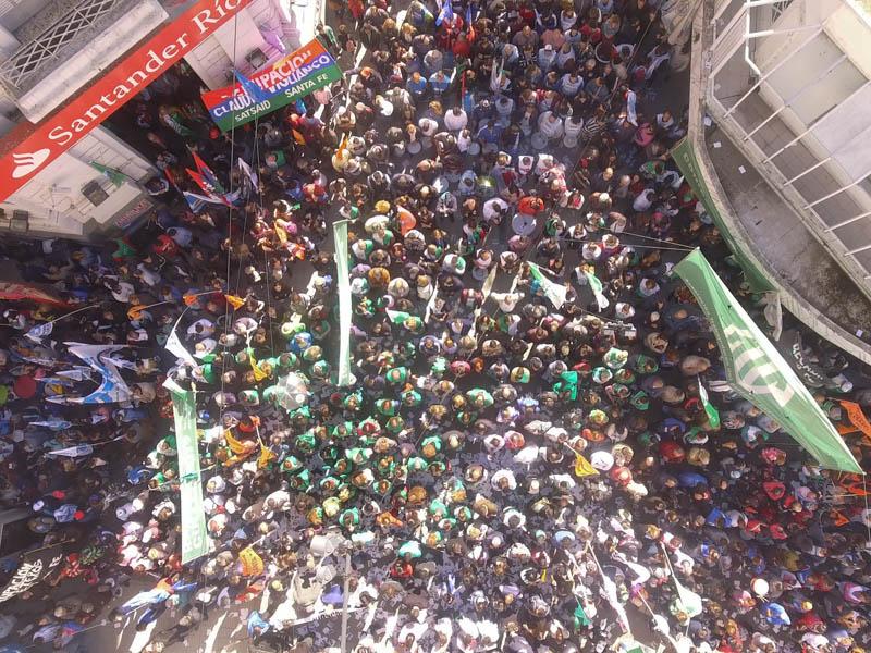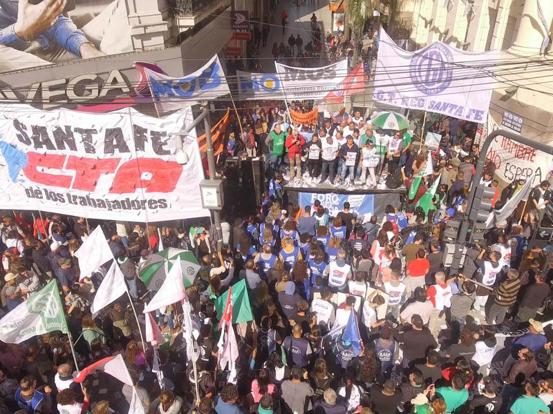 Las estrofas del Himno Nacional Argentino coronaron un gran y masivo acto, con una altísima adhesión al paro nacional, en una jornada histórica para el movimiento obrero y organizaciones sociales de Santa Fe.