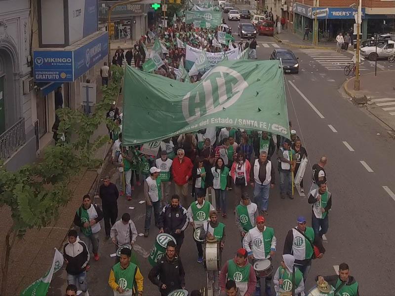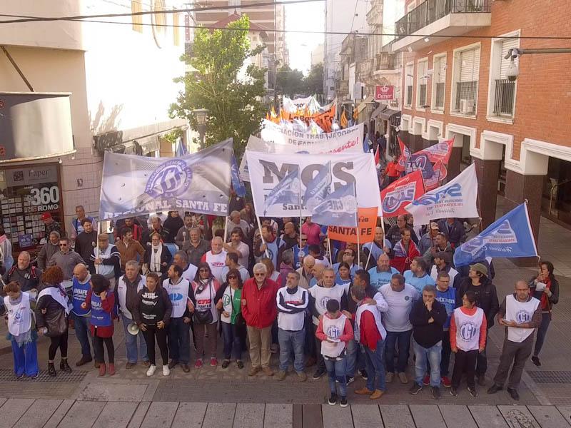 Al igual que en otras ciudades del país, este martes 30, la Asociación Trabajadores del Estado -ATE- Santa Fe y cientos y cientos de santafesinos/as de la CTA de los/as Trabajadores/as de Santa Fe, CGT Regional Santa Fe y distintas organizaciones gremiales y movimientos sociales protagonizaron una marcha y masivo acto en Peatonal San Martín y Tucumán de la capital provincial. En la ciudad de Rosario, junto al Movimiento Sindical Rosarino, se hizo también frente a la Bolsa de Comercio con una importante convocatoria.