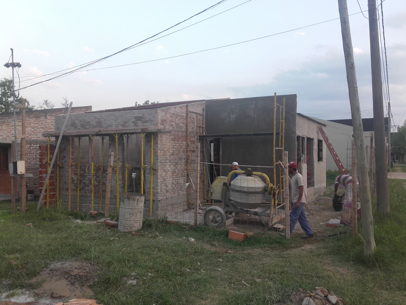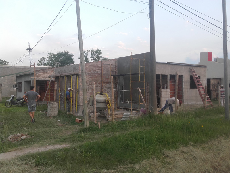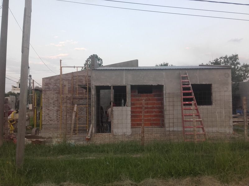Con respecto a la vivienda es necesario destacar que se realizaron los muros, la mayoría de los revoques, el razado de los ladrillos vistos del frente y se techó la obra recientemente.