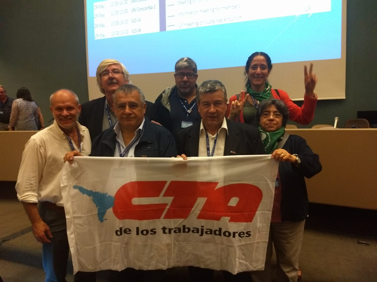 Cabe señalar que la delegación de la central obrera argentina -integrada por Pedro Wasiejko, Secretario General Adjunto de la CTA; Edgardo Llanos, Secretario Administrativo; Yamile Socolovsky, Secretaria de Formación, Investigación, Proyectos y Estadísticas; Rafael Mella, Secretario Adjunto APA; Héctor García, Asesor Jurídico; Andrés Larisgoitía, Director de la Secretaría de Relaciones Internacionales; y Marta Scarpato, Asesora de la Secretaría de Relaciones Internacionales- transmitió a sus pares la difícil situación que impone el Gobierno de Macri a los trabajadores y al pueblo de nuestro país.