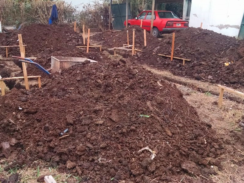 La obra se encuentra en la etapa de replanteo y cimentación. Se escavaron y llenaron los cimientos ahora dará comienza la etapa de elevación de mampostería, contrapisos, carpetas e instalaciones.