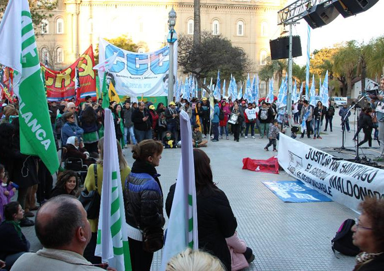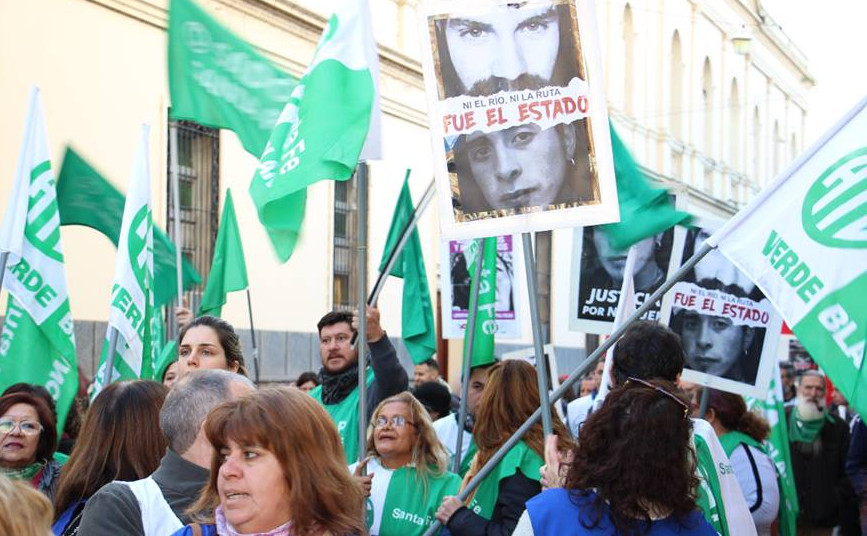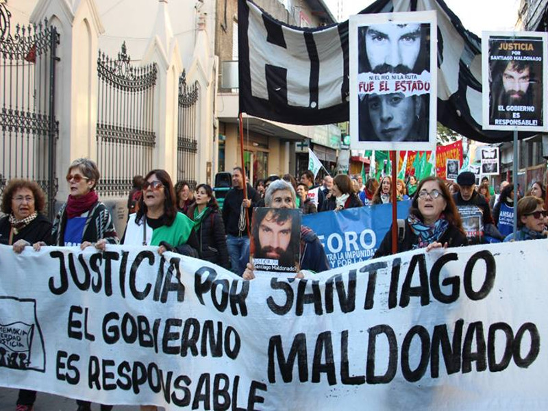 Cabe recordar que Santiago Maldonado desapareció el 1 de agosto, tras la violenta represión de Gendarmería en la Lof en resistencia Cushamen, Chubut. Estuvo desaparecido 78 días. Su cuerpo sin vida fue encontrado el 17 de Octubre en el Río Chubut, “ochenta metros río arriba en un tramo que el Estado ya había revisado siete veces. El 5 de agosto y el 18 de septiembre más de 400 efectivos entre Gendarmería, Prefectura, Policía Federal, perros rastreadores, helicópteros, drones y buzos que responden a Patricia Bullrich dijeron que no había nada en el mismo lugar donde apareció luego el cuerpo”, detalló su hermano Sergio Maldonado en el acto que se realizó en Capital en Plaza de Mayo.