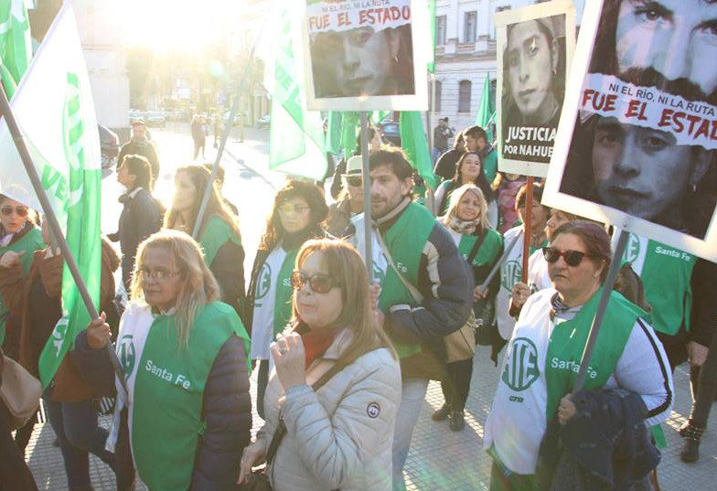 En la capital provincial, una nutrida concurrencia se concentró en Plaza del Soldado para marchar a Plaza de Mayo, donde se realizó el acto central convocado por el Foro contra la Impunidad y por la Justicia del que la Asociación Trabajadores del Estado -ATE- Santa Fe forma parte.