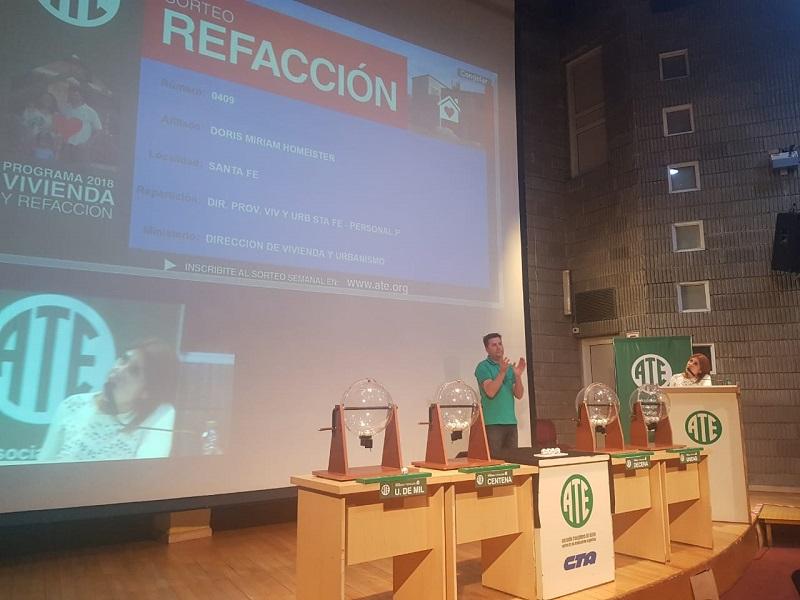 Trabajadores/as de Santa Fe, Rosario, Villa Minetti, Arrufó, Frontera y Villa Constitución fueron los beneficiarios/as de los 10 sorteos, 5 por cada Línea, de Refacción y Vivienda. ATE aporta 240 soluciones habitacionales para sus afiliados/as.