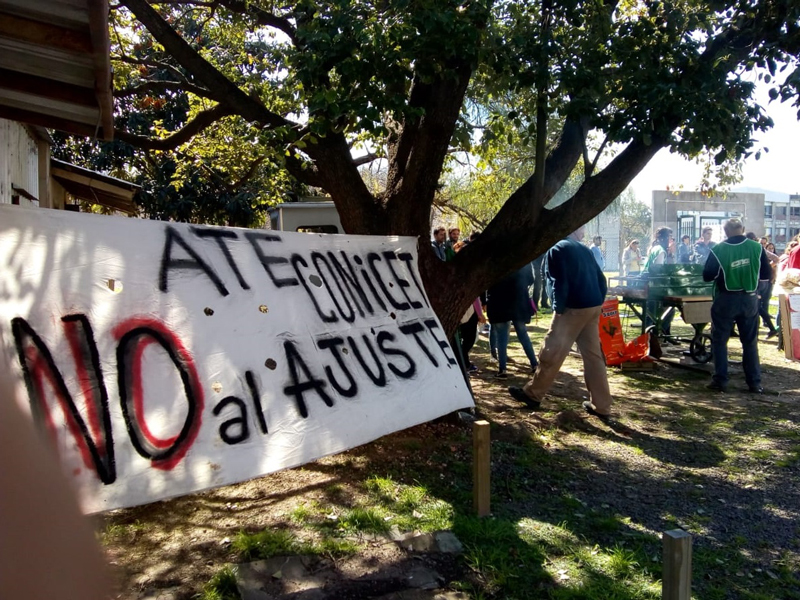 El pasado jueves 16 de agosto ATE junto a los trabajadores de Conicet se movilizaron en reclamo por los recortes y despidos encubiertos de las áreas de ciencia y educación a nivel nacional y en apoyo a la discusión en el congreso del futuro presupuesto.