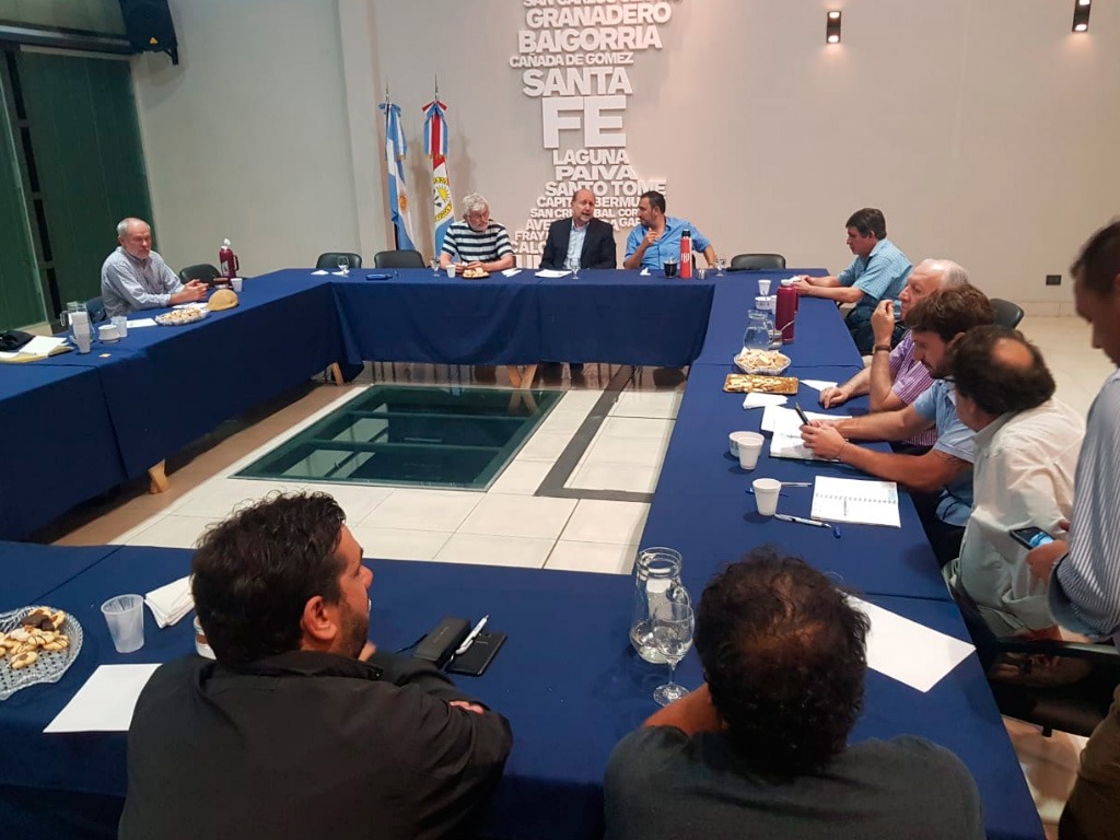 La reunión entre representantes de gremios pertenecientes al M.O.S. – Movimiento Obrero Santafesino que integran las regionales de la CGT de Santa Fe, San Lorenzo, Rafaela, Esperanza, Reconquista y Venado Tuerto, el Movimiento Sindical Rosarino, la CTA provincial y los gremios Amsafe, ATE, Festram y UOM Villa Constitución - y el senador Omar Perotti se realizó en la sede de FESTRAM en la ciudad de Santa Fe.