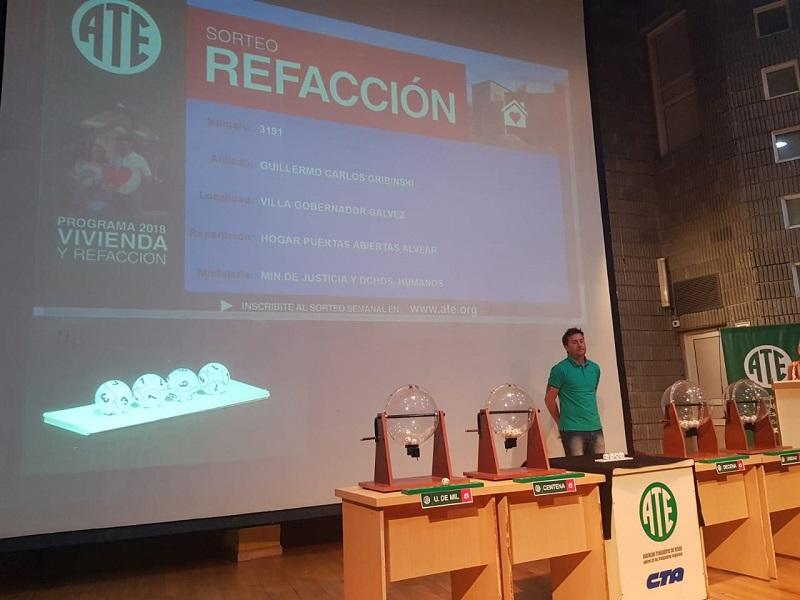 Este miércoles 21, en el Cine Auditorio de ATE, de forma pública y transparente, con transmisión en vivo por Facebook, se realizó el penúltimo sorteo del año del Programa ATE Vivienda y Refacción.