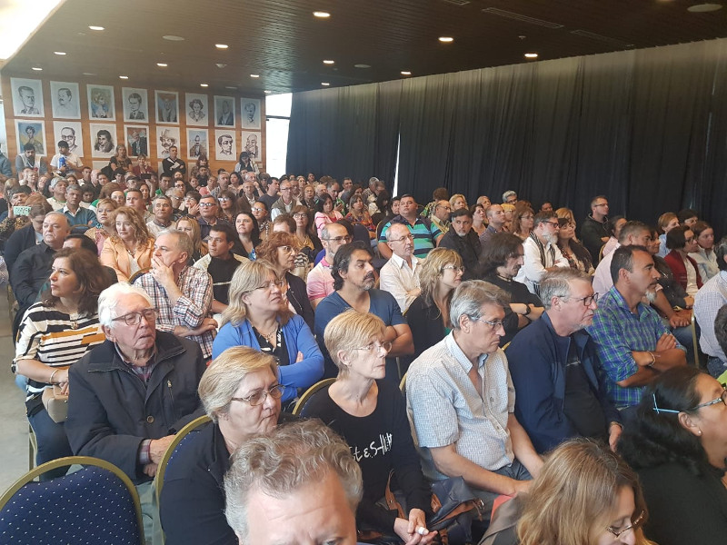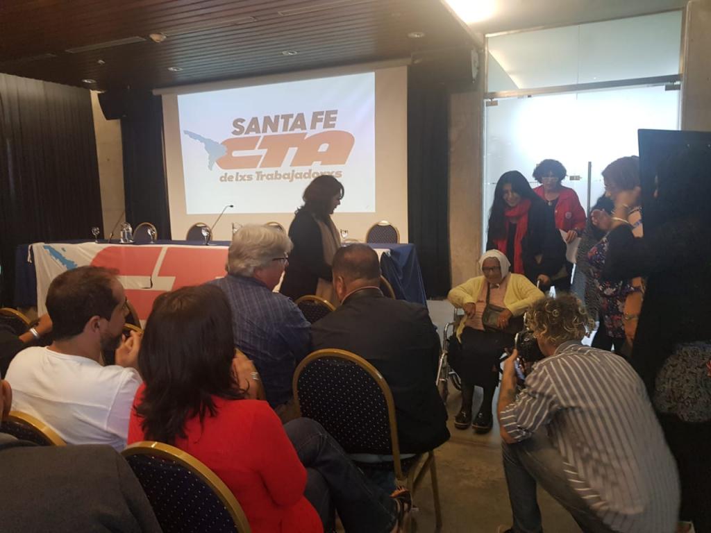 Con un auditorio repleto y la presencia de organismos de Derechos Humanos y compañerxs del Movimiento Obrero Santafesino, se realizó en el inicio de la jornada un emotivo homenaje a Aldo Pighín de la CTA Regional Vera recientemente fallecido, a los 44 submarinistas del Ara San Juan, a la lucha de las Mujeres, a Rodolfo Orellana compañero de CTEP asesinado en el marco de la represión de la policía bonaerense y al compañero de prensa Martín Licata, hallado muerto tras haber recibido amenazas por su trabajo.