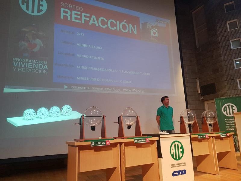 Como cada miércoles de este año, en el Cine Auditorio de ATE, en forma pública y transparente, se realizó el último sorteo del Programa ATE Vivienda y Refacción, el número 24. En este 2018, ATE aportó 240 soluciones habitacionales, y prevé la continuidad de la iniciativa para el año que viene.