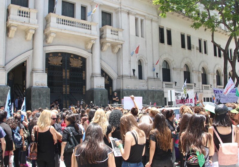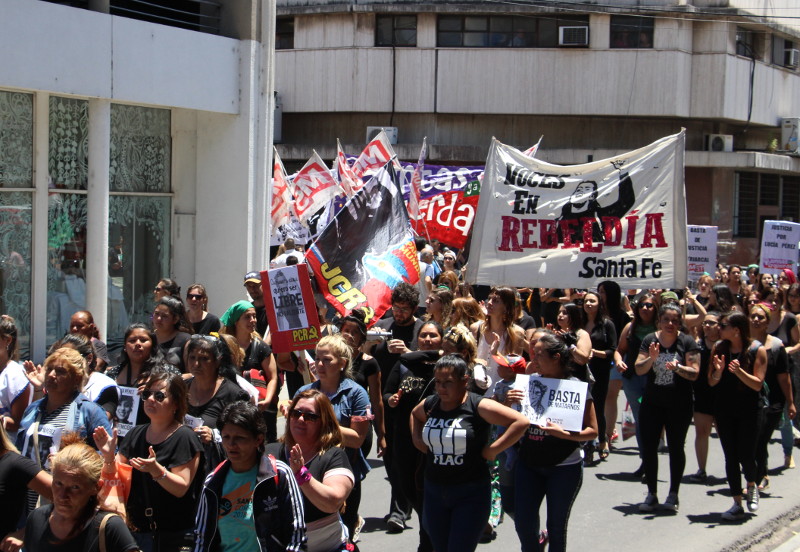 A su vez, cientos de mujeres de negro gritaron frente a los Tribunales santafesinos: “Vivas, libres y con justicia y con trabajo nos queremos!”.