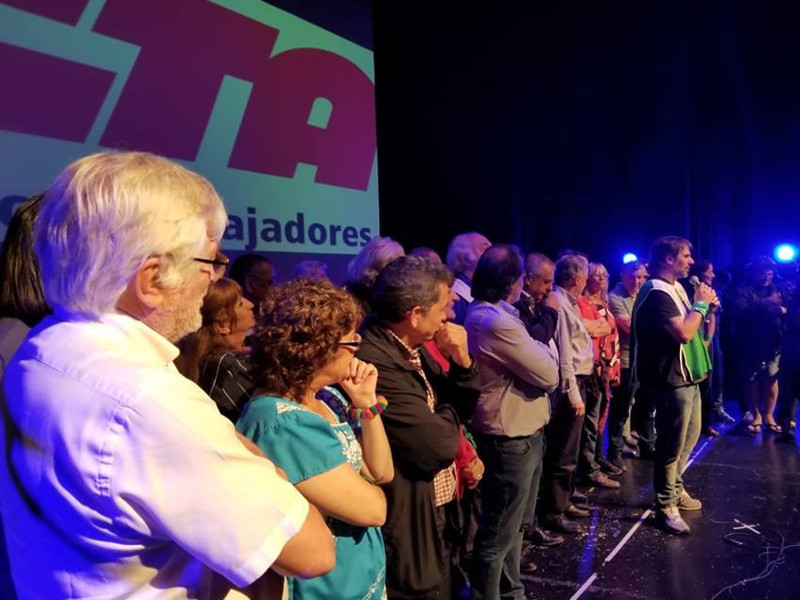 Y tenemos la posibilidad de poder construir una vía de salida de esta crisis enorme. La tenemos ante nosotros. Hemos dado un gran paso, sobre todo en esta construcción de un frente de unidad. Para nosotros fueron muy importanteAsumió la nueva conducción de la CTA En el auditorio de la UMET (Universidad Metropolitana para la Educación y el Trabajo en C.A.B.A.), con la presencia de 500 personas, asumió la nueva comisión directiva de la CTA de los Trabajadores. Jorge Hoffmann, secretario general de ATE, Un homenaje al compañero Marcelo ‘Nono’ Frondizi, dio inicio al acto de asunción de las nuevas autoridades nacionales y provinciales. En un video casero filmado durante una asamblea en ATE Verde y Blanca, el querido y entrañable ‘Nono’ expuso un contundente discurso político donde expresó la necesidad de ser generosos en la articulación y en la unidad para derrotar al gobierno neoliberal de Macri y subrayó la importancia de los nuevos jóvenes militantes de la seccional de Germán Abdala “dispuestos a dar la batalla, que no se entregan y que tienen convicciones”. Luego, sobre la enorme pantalla detrás del escenario, se proyectó el saludo de Milagro Sala, presa política del gobierno de la alianza Cambiemos, quien fue elegida secretaria de Pueblos Originarios de la CTA de los Trabajadores. El presidente de la Junta Electoral Nacional de la CTA, Francisco ‘Tito’ Nenna, brindó los resultados de las elecciones en la CTA y leyó el acta de toma de posesión de los cargos. “El proceso eleccionario del 6 de septiembre de 2018 da cuenta de que ha resultado vencedora en el orden nacional la lista 6 encabezada por el compañero Hugo Yasky al reunir 152.583 votos, contra 12.397, 2010 en blanco, 288 anulados y 56 impugnados”. A modo de balance de los últimos tres años, el secretario general de la CTA de los Trabajadores reelecto, Hugo Yasky, expresó: “No dudamos ni un momento, desde que asumió el gobierno de Mauricio Macri, que nuestro mandato, nuestro lugar era tratar de vertebrar la lucha en el espectro más amplio de unidad que nuestra inteligencia, nuestra fuerza y nuestra convicción nos permitía construir, propiciar y que no debíamos perder un solo minuto en esa lucha de resistencia para intentar que lo que sabíamos que este gobierno venía a hacer se pudiera concretar”. "Hoy decíamos reunidos a la mañana que tiene que servir el acto que hagamos para decirles a nuestros amigos y amigas, a los compañeros y compañeras de la CGT, de la CTA, de los movimientos sociales, de las pymes, a los luchadores del campo popular, tenemos que profundizar y expandir hasta el máximo la construcción de un frente nacional por la producción, por el trabajo, por los derechos de la clase trabajadora, por la vigencia de los derechos humanos. Tenemos que constituir las bases de una articulación política, social y sindical que le ofrezca a nuestro pueblo una alternativa para derrotar definitivamente a este gobierno de la clase dominante”, señaló el secretario general de la CTA reelecto. “Para que a las argentinas y a los argentinos nos vaya bien hay que derrotar al gobierno de Mauricio Macri, hay que derrotar a la clase dominante. Hay que levantar las banderas populares, hay que decir el peronismo está vivo, está de pie. No se negocia con las conquistas de nuestro pueblo, no se negocian los derechos humanos, no se negocia con las conquistas de los movimientos sociales", resaltó Yasky en otro fragmento de su intervención Lo acompañan en la flamante conducción de la CTA, los secretarios generales adjuntos Edgardo Llano, titular de la Asociación de Personal Aeronáutico (APA) y Daniel Catalano, dirigente de la Asociación de Trabajadores del Estado - seccional Capital (ATE Verde y Blanca), quienes dirigieron unas palabras a los presentes. También tomaron la voz, las compañeras Estela Díaz, secretaria de Género e Igualdad de Oportunidades de la CTA reelecta, y la secretaria de Cultura de la CTA electa y secretaria general de la Asociación Argentina de Actores, Lola Berthet. Jorge Hoffmann, secretario general de la Asociación Trabajadores del Estado -ATE- Santa Fe y Adjunto de la CTA Nacional en el período anterior y flamante miembro de la recién asumida conducción en la Secretaría de Relaciones Institucionales. Estuvieron presentes la presidenta de la Asociación Abuelas de Plaza de Mayo, Estela de Carlotto; el legislador porteño Carlos Tomada; el secretario general de la CTA Autónoma, Pablo Micheli; el secretario general adjunto de la Federación Nacional de Camioneros, Pablo Moyano; el secretario general de la Federación Gráfica Bonaerense, Héctor ’Gringo’ Amichetti; el economista e integrante del Consejo Asesor del Centro de Investigación y Formación de la República Argentina (Cifra - CTA), Eduardo Basualdo; entre otros. Discurso de Daniel Catalano Compañeras, compañeros, hoy es un día muy especial. Mientras miraba el video del Nono, en lo que fue la última intervención que nos dejó en ATE, no podía dejar de pensar en Melisa Bogarín, que fue la primera compañera fallecida al ser notificada de su despido en Agroindustria, no podía dejar de pensar también en Rubén y Sandra, compañeros que dieron su vida para que nuestros pibes y pibas pudieran desayunar; no puedo dejar de pensar en todos aquéllos y aquéllas que dan todo para que podamos tener mejores condiciones de vida. Las compañeras y compañeros de ATE Capital estamos contentos de ser parte de la Central. Acá está Carlos, está Hoffmann, que con un acto de grandeza enorme impulsó que podamos entrar y participar de este espacio y nos estimuló un montón; Juan González que es otro compañero histórico que viene peleando de manera aguerrida para que esta Central vaya para adelante y tantos otros y otras que todos los días trabajan mucho para que esta Central tenga cuerpo, un cuerpo más grande, más musculatura, pueda seguir creciendo. Y en eso reconocer al comp