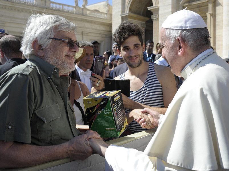 Además, el Papa recibió en sus manos el “Panflorilegio”, la edición inédita de la Obra Completa del Maestro Fernando Birri que llevó adelante ATE Santa Fe, presentes que el jefe de la Iglesia Católica agradeció amablemente.