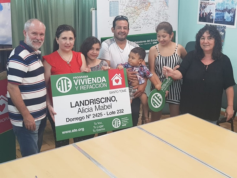 En ese contexto, Alicia Mabel Landriscino, trabajadora en el SAMCo de Santo Tomé y sorteada en agosto, acompañada de su familia, recibió con mucha emoción y alegría, la llave de su casa, ubicada en el barrio de la vecina ciudad que ATE dispuso para tal fin.