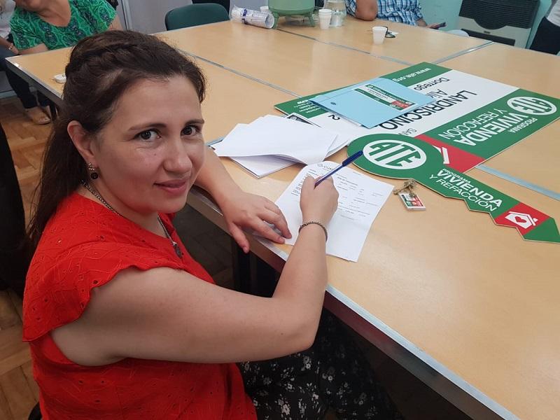 Desde San Javier, trabajadora en el SAMCo de esa localidad, vino para obtener la adjudicación definitiva de la Línea Refacción Alcira Rodríguez, quien tiene planificado revestir su baño y pintar algunas habitaciones, entre otras obras. Fue sorteada el 10 de octubre pasado.