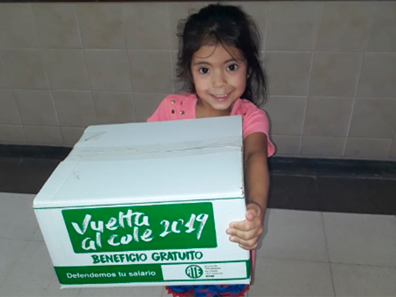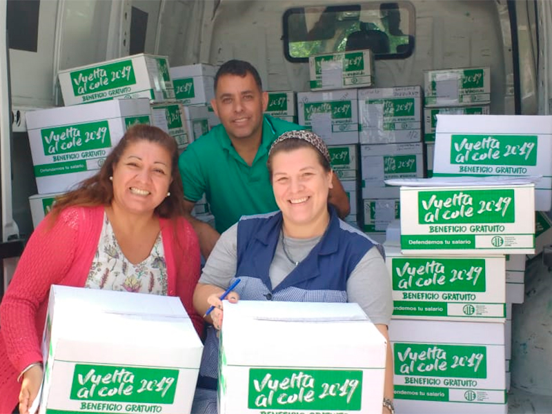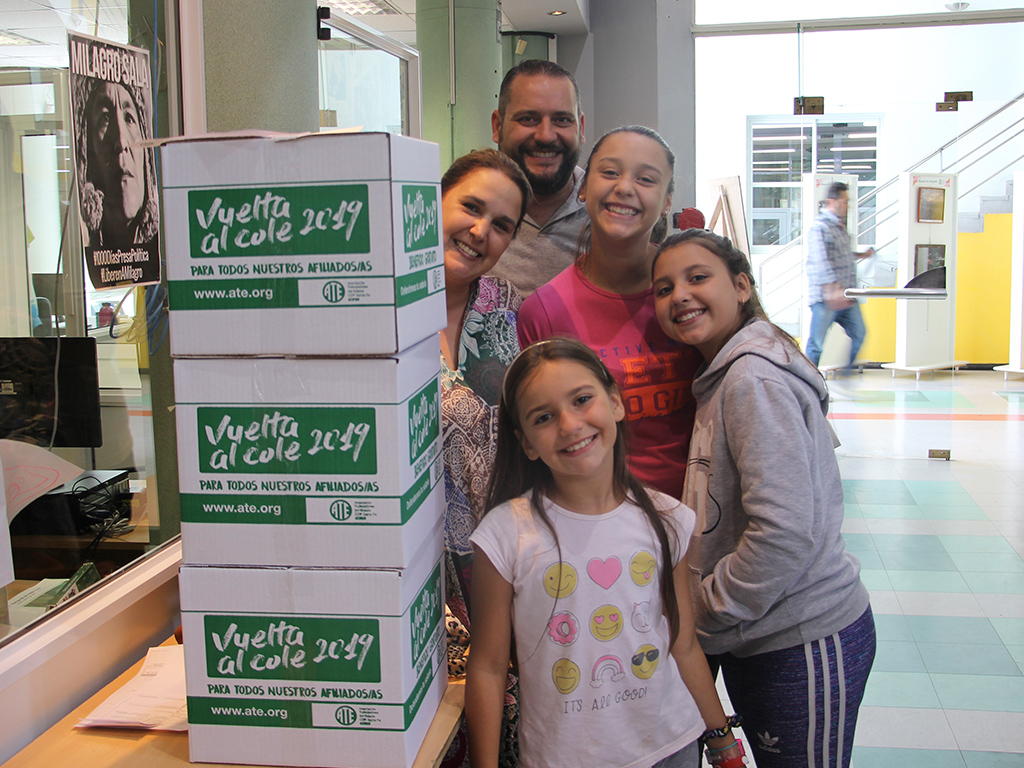 La Asociación Trabajadores del Estado -ATE- Santa Fe continúa entregando los bolsones escolares a las afiliadas/os inscriptos oportunamente en el marco de la campaña Vuelta al Cole 2019, ingresando ya en la última etapa. Más de 15 mil kits escolares -compuestos por zapatillas, remera, equipo de gimnasia con pantalón y buzo, y útiles- ya están en manos de los hijos e hijas en edad escolar de los afiliados/as de toda la provincia.